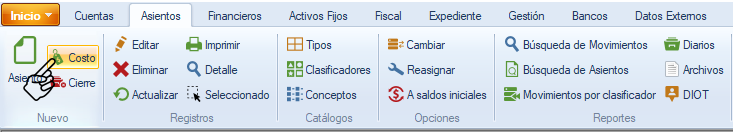 En esta opción se determina el asiento de costo de ventas, mensual o global. Da clic en el botón "Costo".