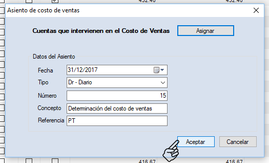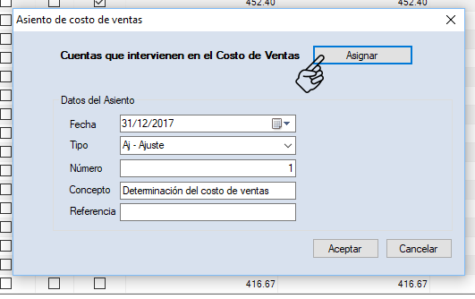 Asignar. Asigna los elementos para calcular el costo de ventas.