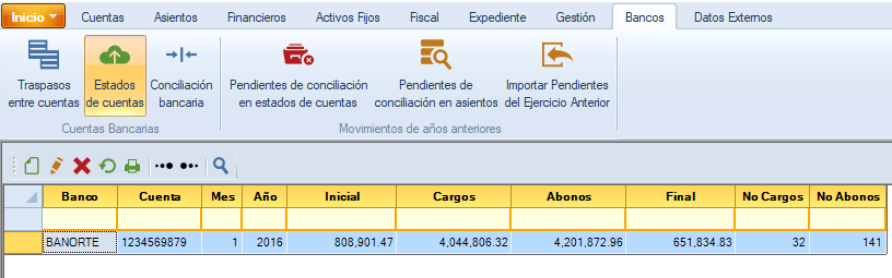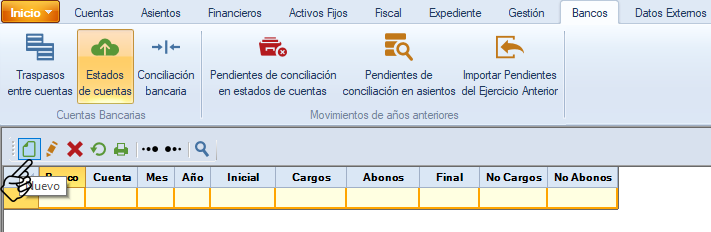 Con esta opción podrás capturar o importar, desde Excel, los estados de cuenta bancarios. Da clic en "Estados de cuenta".